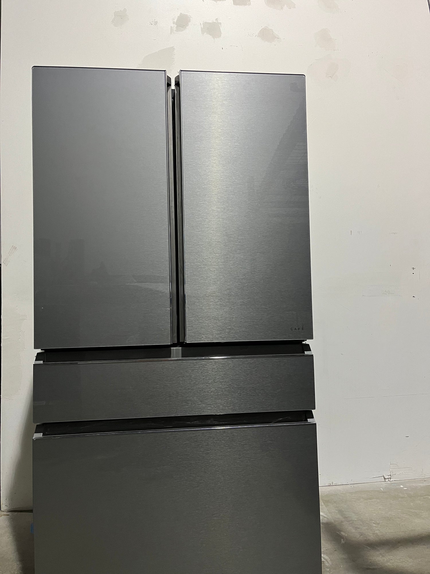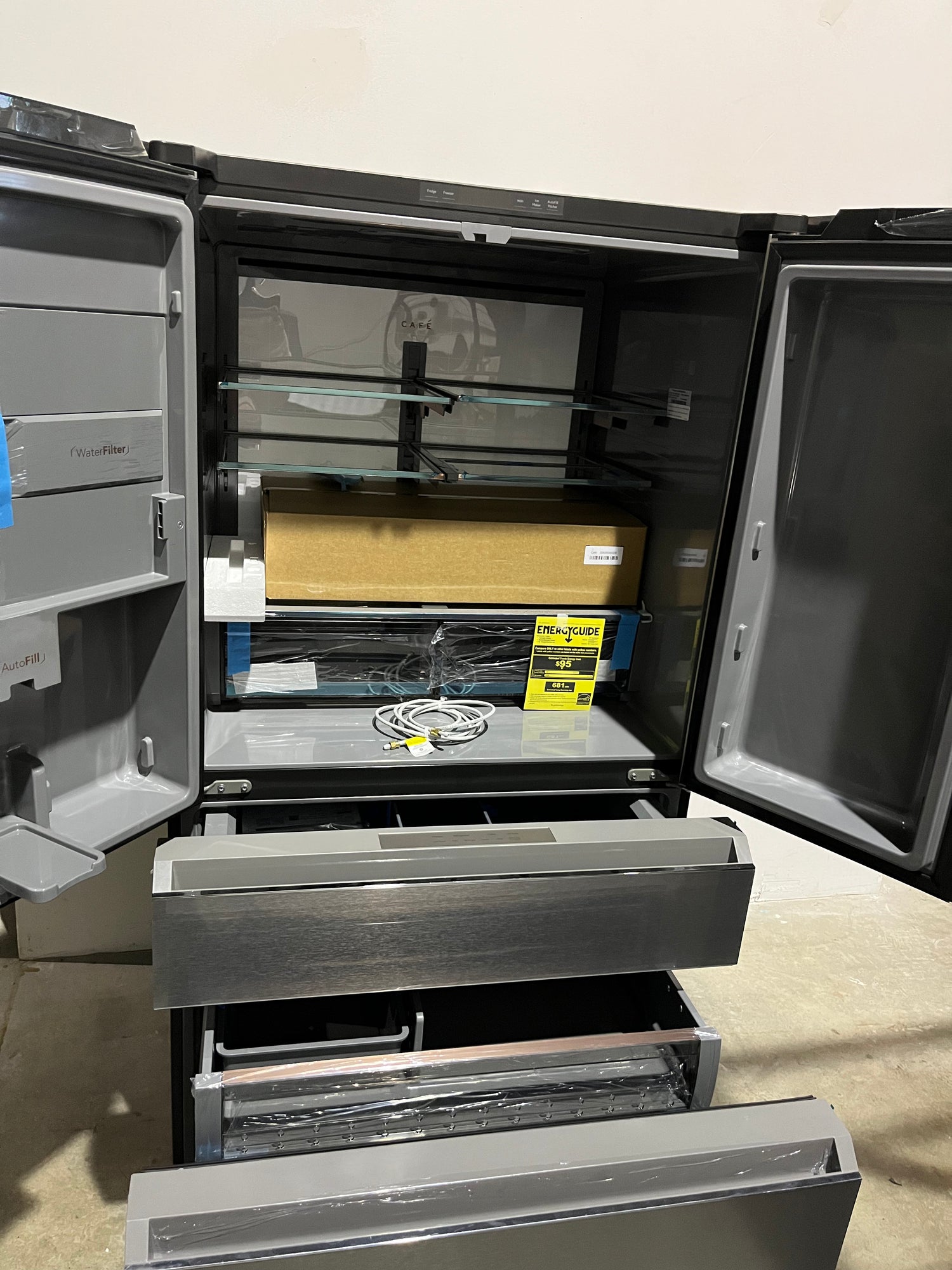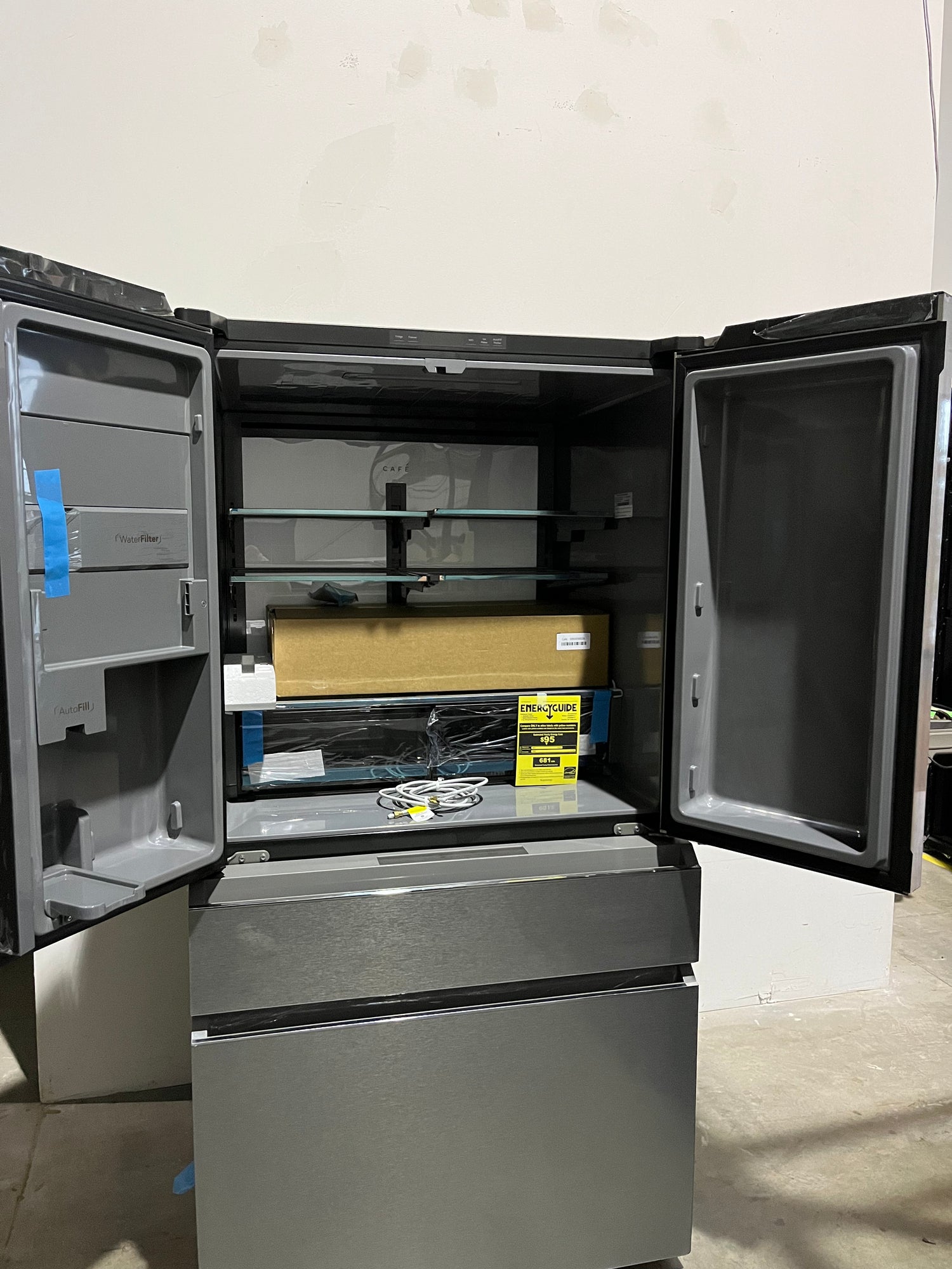 Cafe CGE29DM5TS5 ENERGY STAR 28.7 Cu. Ft. Smart 4-Door French-Door Refrigerator in Platinum Glass With Dual-Dispense AutoFill Pitcher